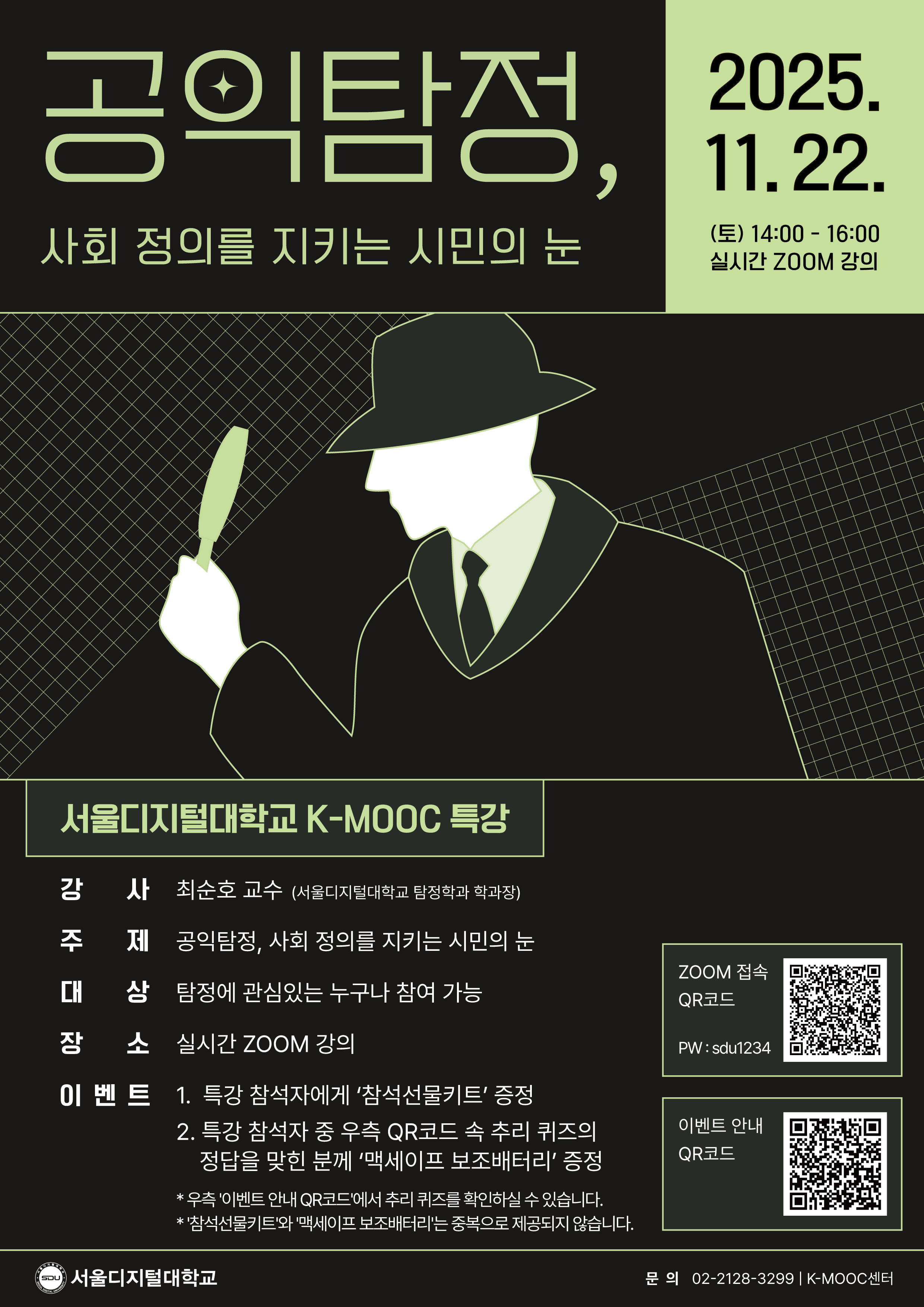 - 서울디지털대학교 2025년 2학기 K-MOOC 개별강좌 특강 안내
